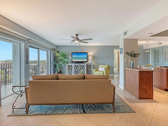 ST. ARMANDS TOWERS SOUTH - Located across the street from the crystal blue waters of Lido Beach, and two short blocks from St. Armands Circle, this furnished fifth-floor condo is the epitome of coastal chic with 1,275 sq ft of interior living space in an open floor plan, with two bedrooms and two full bathrooms. The east-facing residence extends a refined yet relaxing living experience with style that includes natural textures, a palette of coastal colors, and generous sliding glass doors from the living room and both bedrooms to the spacious balcony, creating an open airy feel throughout the space. Thoughtful updates such as ceiling fans and oversized tile floors are a perfect complement to the Florida lifestyle. The kitchen is open to the spacious living room and dining room, and is equipped with recessed lighting, stone counters, an undermount sink, beautiful cabinetry with plenty of storage, and stainless appliances. The primary bedroom includes an en suite bathroom and generous walk-in closet, and the additional bedroom is perfect for a home office, or an extra room for guests. There is a storage closet in the unit, and one covered carport space is included, with a private storage locker for beach toys. St Armands Tower South is a well-managed, pet friendly building (up to 25 lbs), with amenities that include a heated pool with Gulf views, beautifully updated lobby, community room with kitchen, library, and fitness room, with a laundry room on each floor, onsite management and maintenance supervisor. When you’re not at the beach, enjoy the upscale European ambiance on St. Armands Circle with art galleries, retail therapy, relaxing spa services, gourmet & casual sidewalk cafes, a vibrant social scene, a pedestrian-friendly promenade, and an array of local events just around the corner. The iconic Lido Key location is also just 3 miles from downtown Sarasota, so you can truly experience the metropolitan sophistication of Florida’s “Cultural Coast” from an elegant beachside locale at St. Armands Towers South.