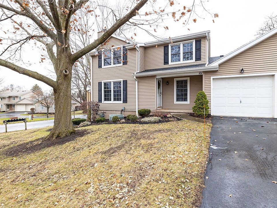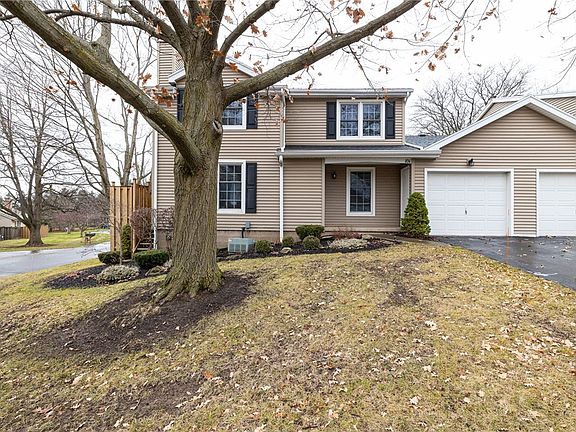 You do not want to miss this Penfield townhouse, situated in a desirable, low traffic neighborhood and close to everything Penfield has to offer! This home has been loved, meticulously maintained and updated throughout! Low maintenance living with the HOA handling all exterior maintenance! Brand new vinyl plank flooring and paint throughout the main floor plus new carpet upstairs. The updated kitchen offers freshly painted cabinets ‘23, new under cabinet lighting ‘23, new fixtures and a breakfast bar overlooking the dining space. Perfect for entertaining or every day convenience! The large living room boasts a statement making gas fireplace, new flooring ’20 and fresh paint ’22. New flooring and paint in the updated 1st floor 1/2 bath. New carpet ‘20 leads you to two spacious bedrooms upstairs including the master with direct access to the updated full bath. The finished basement space provides even more room to spread out! Greenlight internet! Delayed negotiations until Monday 12/18 at 12:00pm. Open House Saturday 12/16 11AM-12:30PM.