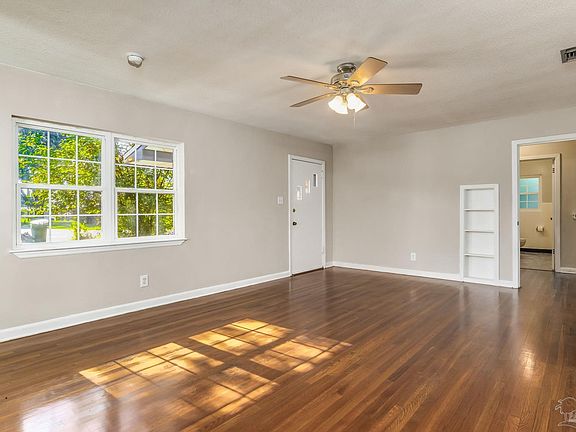 Bright and move-in ready, this 2-bedroom, 1-bath, 1,084-SF Aero Vista home pairs classic curb appeal with practical updates plus an attached 1-car garage and no HOA. When you arrive, a crisp white exterior with blue shutters sets a charming tone. Inside, hardwood floors anchor a sunny living/dining area with chair-rail detail and a kitchen pass-through that keeps the space open and social. Fresh interior paint keeps every room feeling bright and clean.The kitchen shines with new appliances and new countertops. Two comfortable bedrooms sit near a full bath finished in timeless vintage white subway tile. Out back, a covered patio opens to a large, privacy-fenced yard under mature shade trees which is weekend-ready for pets, play, or a garden. The unfinished garage adds storage and project space. Desirable Aero Vista location minutes from Downtown Pensacola. Call us today to schedule your showing!
