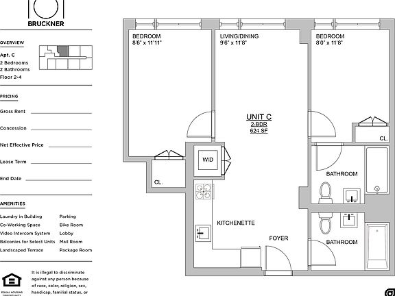 2 Bed / 2 Bath at 101 Bruckner Blvd - Unit: 5H in Port Morris, Bronx. Pets Upon Approval. Nearby subway stations include: Brook Av (6).30 mins from Grand Central & 90 minutes from the Catskills! Full roof with grills & Manhattan skyline view. Gym, lounge, co-working, screening room, yoga studio, podcast studio and party room included. Full LG 24" washer & dryer, kitchen island, high-end Blomberg microwave & 18" dishwasher. Marble countertops, split unit A/C & 10-foot ceilings. Close to Alexander Ave Open street & so many cafes & restaurants!We can help you find roommates on Nooklyn.