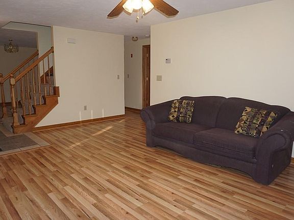 Easy to show and ready to sell! Lovely one owner home with a private yard in a desirable country location. It's an open concept from the fireplaced living to the dining room, new laminate wood floors and a large bright applianced kitchen with an island. Upstairs there are 2 big bedrooms (one with a walk-in closet) and a full bath with the third BR and a another full bath on the first floor. Inviting warm natural woodwork, freshly painted walls and new carpeting make this home like new! The 200 amp elec system is generator ready and a big shed in the back yard offers great storage space with lawn equipment included!