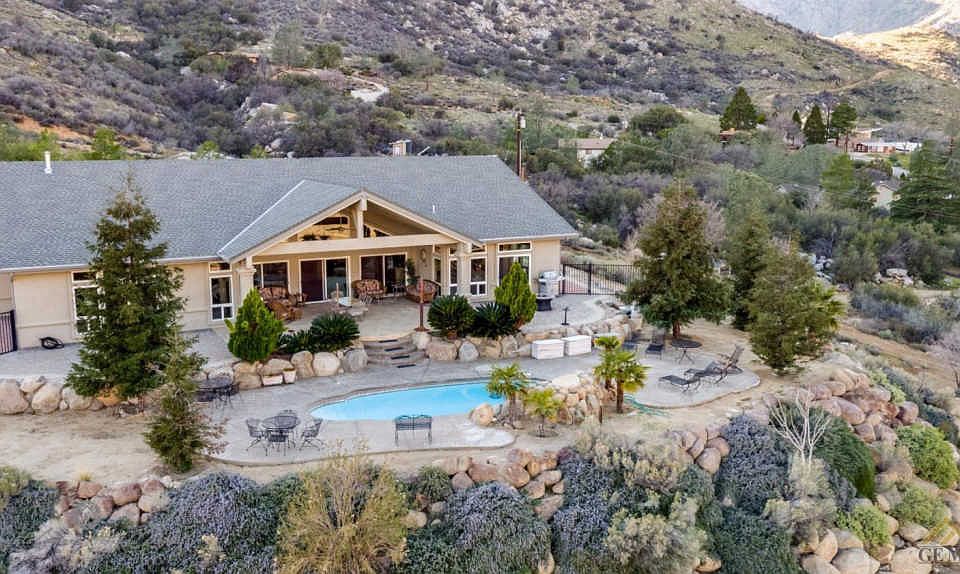 This Master of all mountain homes surpasses your wildest dreams!! with a 7.72 acre estate which includes a 5044 sqft Main house Plus a 1027 Sqft guest house and a shop fit for a KING...with breathtaking views features master craftsmanship, exuding elegance and grandeur. If it weren't for the close by world famous Kern River,you would probably stay indoors. Sensitive to its mountainside surroundings, Burma Dream Home strikes an excellent balance between rich opulence and nature-inspired design. Admire astounding views while you enjoy the morning coffee. The open, inviting great room with fireplace and wet bar is an ideal place to relax with family or entertain friends. Kick start your night at the bar or enjoy a glass of wine. Later, make a move to the dance floor and throw your best shapes. Outside, take a dip in the heated pool and enjoy the magical waterfall flowing rhythmically in the backyard.Did we mention the guest house and 8 car museum/shop?!