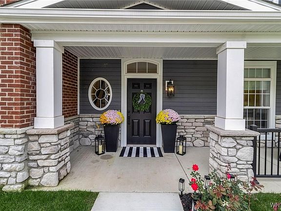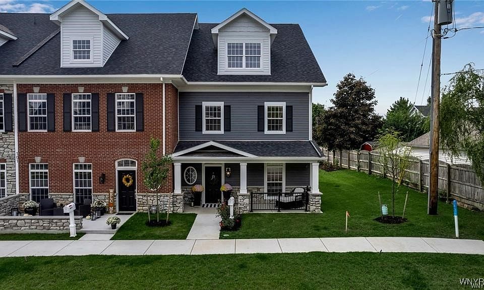 The Key To Your Luxury Dream Town Home has arrived! This Stunning end unit tri-Level Natale built home has upgrades throughout & modern amenities to enjoy. Location could not be better! Explore all the shopping and dining options all just minutes away from your front door. Conveniently located near thruway access & airport. Front curb appeal highlights; professional landscaping, concrete sidewalk , siding with stone accent, side yard green space & spacious covered porch to relax and enjoy on those hot summer nights. Entryway in the back has a man door & two car garage with epoxy flooring. Upon entering through the garage or front entry you'll notice the beautiful foyer surrounded by upgraded porcelain tile, staircase and/or Elevator access. Accommodating first floor En-Suite with full bath, bedroom & closet. All closets & pantry have been redone by California closets. Welcoming Open Concept Second Floor perfect for all your entertaining needs. Two Story Vaulted Ceilings with Open Loft to 3'rd floor make the room & space feel so much larger in person. Dream Kitchen w/quartz countertops, custom cabinetry, walk in pantry, stainless steel appliances and island with plenty of seating. Living Room is highlighted by a modern chandelier & floor to ceiling custom fireplace w/granite hearth. Second floor laundry , half bath and second bedroom with own balcony & closet complete the second floor behind the kitchen. Open Staircase to Loft on 3'rd floor leads you to your Primary Bedroom Oasis & dream California closet! Loft can be used as flex space for reading or office space. Primary Bedroom has area for desk and sitting area as well. The Perfect Getaway after a long day is in your glamorous spa bathroom with soaking tub, tile shower and vanity. This is convenient living at its finest with lower taxes and less maintenance to worry about. Move right in and enjoy all the custom upgrades that have already been done.