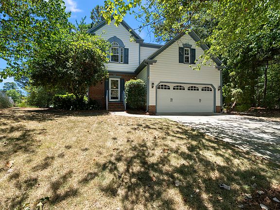 Welcome to this inviting home nestled in a prime Cary location! Situated on a corner lot within a peaceful cul de sac, this well-maintained residence offers a natural backyard shaded by mature trees and features a convenient 2-car garage with ample storage. Step inside to discover the first floor adorned with gleaming hardwoods and a welcoming 2-story foyer enhanced with decorative wainscoting. The spacious family room is bathed in natural light from expansive windows and boasts a cozy gas log fireplace. The kitchen is equipped with stainless steel appliances, granite countertops, white cabinets, a pantry, and a charming eat-in breakfast area. Adjacent, the dining room offers abundant natural light and opens onto a newly refinished deck through sliding glass doors. Completing the main level is a well-appointed laundry room with a window and a convenient powder room. Upstairs, retreat to the serene owner's suite featuring a large bedroom with picturesque views of nature through a bank of windows. The primary bath offers dual vanities, ample lighting, a spacious soaking tub, tile flooring, and a separate walk-in shower. The expansive primary closet is fitted with upgraded shelving and storage. Additionally, two other bedrooms on this floor feature walk-in closets and share a full bath with dual vanities. Conveniently located near RTP, RDU, shopping, dining, entertainment venues, great schools, Cary YMCA, greenways, Bond Park, and major thoroughfares, this home offers easy access to everything the Triangle has to offer. Don't miss your chance to own this wonderful property in one of Cary's amazing neighborhoods!