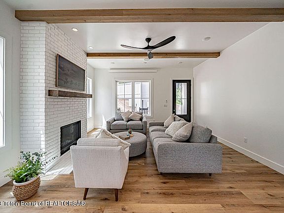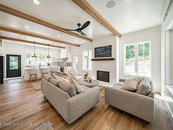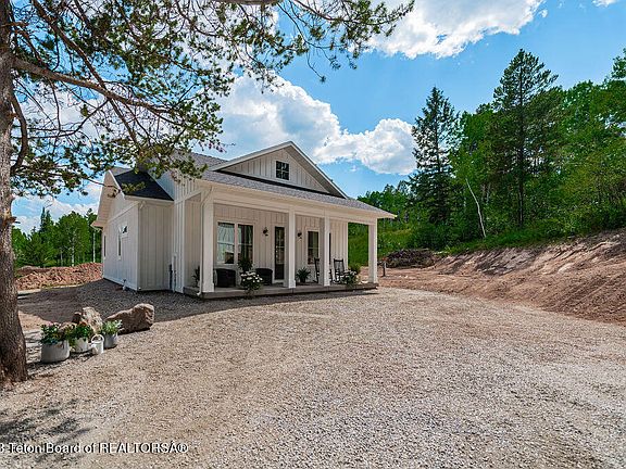 Mountain modern farmhouse on two lots in Alpine retreat. This new build marries the best of contemporary class with wood accents by combining clean lines, minimalism, natural colors and textured materials, large windows, and lots of natural lighting. The custom home offers a detached garage with a 1 bed, 1 bath guest house above it. Built by David Allred with Viking Development.