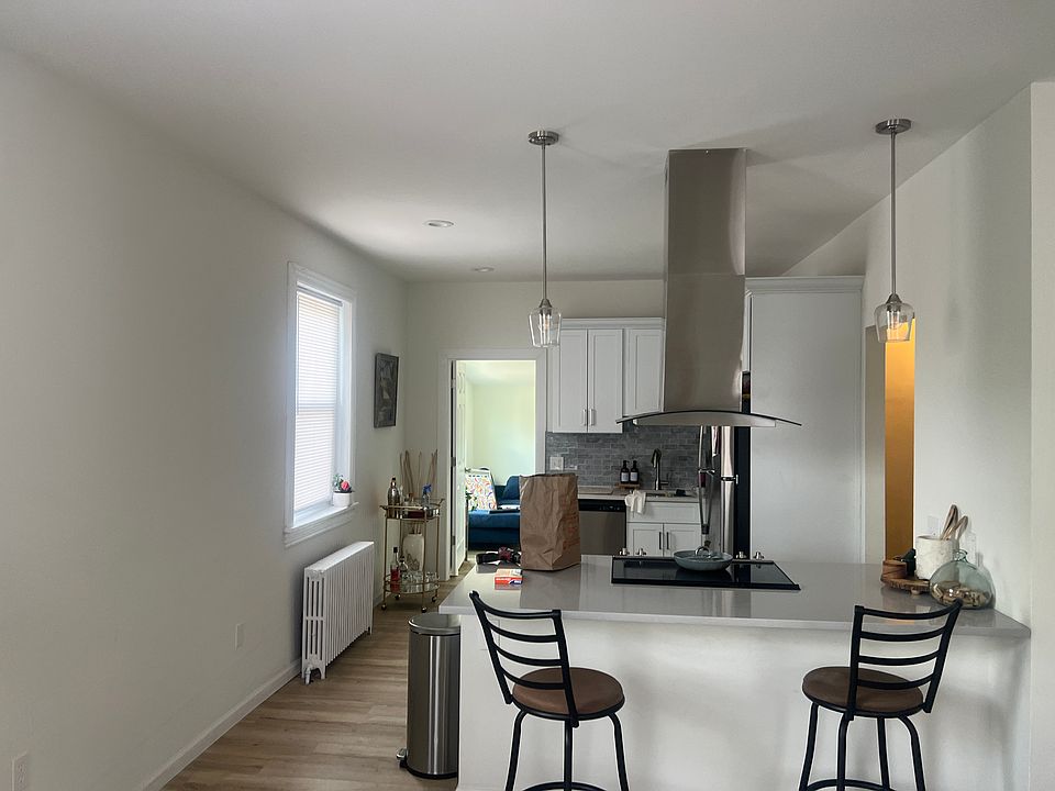 Completely renovated 2 story apartment for rent. Large kitchen with new quartz countertops and stainless steel appliances. Open living room with 9' ceilings and attached office or den. Top floor features 2 bedrooms with spacious closets.