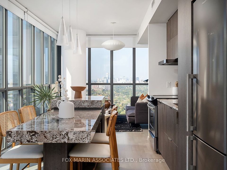 Tall, bright, and handsome, this sophisticated swooner will not take no for an answer, and will not disappoint. X2 -- two kisses from Charles: he's truly in charge here. Breathtaking views surround you in this stately stunning corner apartment: a living painting, a landscape and skyline that is always reinventing itself. The long gorgeous open concept kitchen means you can stay part of the conversation, while preparing a 3 Star Michelin worthy meal and keep your guests cocktails topped off with ease. Chefs kiss! After dinner the living room beckons for binge watching, relaxing, and watching the sun set in the western sky from 40 floors above street level: all at the same time. Floor to ceiling windows along two sides give this well-appointed gent an easy confident airiness and such great natural light you may never have to turn a light on until dusk. Generous bedrooms, two bathrooms, and a welcoming outdoor terrace, the winning just keeps coming. Being in the heart of downtown but feeling the calm and quiet of this unit is an amazing combination. Take advantage of the buildings gym, rooftop deck and outdoor pool, concierge services and visitor parking. Get on a first name basis with Charles immediately: youll be calling him home in no time.
