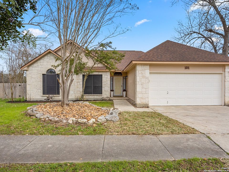 Charming Updated Home in Prime Boerne Location! Situated on a spacious corner lot, this beautifully updated home offers the perfect blend of comfort, style, and convenience. Located within walking distance to award-winning Boerne ISD schools (K-8) and the vibrant Hill Country Mile on Main Street. You'll enjoy easy access to top-rated education, shopping, dining, and local charm. The open-concept layout features soaring ceilings and large windows that fill the living and dining areas with natural light, creating a bright and welcoming atmosphere. Just off the main living space, a screened-in sunroom provides a tranquil setting to enjoy your morning coffee, unwind with a book, enjoy growing plants or simply take in the peaceful surroundings. It's a versatile space that adds comfort and charm to everyday living. The home includes three well-appointed bedrooms and two full bathrooms. The primary suite offers a tray ceiling, walk-in closet, and an en-suite bath with a walk-in shower. The well-designed front bedroom with integrated Murphy bed is a perfect balance of comfort and versatility, ideal as a guest retreat, home office, or sun-filled reading space. Thoughtful updates include six ceiling fans throughout the home for year-round comfort. Additional features include a two-car attached garage with EGO, glide out shelving in kitchen, and a well-maintained yard with mature trees. The square footage does not include the sunroom. This move-in ready home is a rare opportunity in one of Boerne's most desirable neighborhoods-where lifestyle, location, and livability come together seamlessly. Owner is licensed real estate agent.