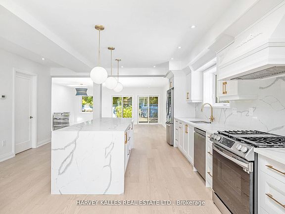 Welcome to to this beautifully fully renovated home tucked away on a quiet, tree-lined street in one of Toronto's most charming neighbourhoods. Situated on a 29 by 94 ft lot. This home has a fully legal basement apartment adding flexibility for rental income, a guest suite, or private space for extended family. Blending modern elegance with classic character, this home lets you experience the warmth and history of the city every day, with the comfort and style of contemporary living. The bright, open-concept layout features 4 spacious bedrooms, including a primary suite with its own ensuite, a private balcony overlooking the backyard and ample closet space. Modern bathrooms, engineered oak floors, a gorgeous entrance with a double door. But the heart of the home is a sleek, functional custom kitchen with a statement island, perfect for casual family meals or hosting large gatherings. Leading into a beautiful family and dinning room overlooking the backyard and deck. Step outside to your tranquil backyard retreat, full landscaping and a garden complete with a large deck ideal for summer evenings, weekend BBQs, and quiet morning coffees. With a private driveway and parking for two cars, this home truly has it all. A rare, turn-key opportunity in one of Toronto's most sought-after neighbourhoods, where timeless charm meets modern elegance. (Photos have been Virtually Staged)