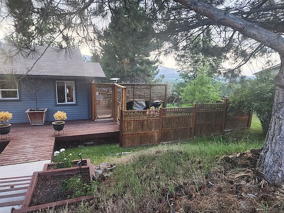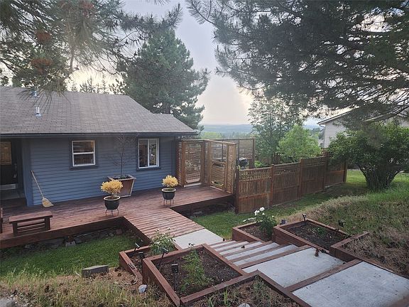 3 bed 1 1/2 bath adorable home with views of the Missoula valley from a privacy deck! Must see home with all the garden boxes/space and growing options you can imagine. Pride of ownership shines throughout! If you love entertaining with views or just enjoy sitting outside and soaking up the views of the valley & enjoy evening sunsets, this home is for you! In-between the detached garaged and house you will find a sweet quiet secret spot. Inside you can enjoy the natural lighting that compliments the open floor space between the living room and the dining & kitchen area that has 2 separate French doors that open to the large deck facing North. Make sure and check out the Master bedroom closet! Unique wall closet with soft close drawers, motion-censored lighting & all kinds of slide outs for anything you can imagine. You will be amazed at the storage spaces you can find for just about anything throughout this home creating organization for just about everything.