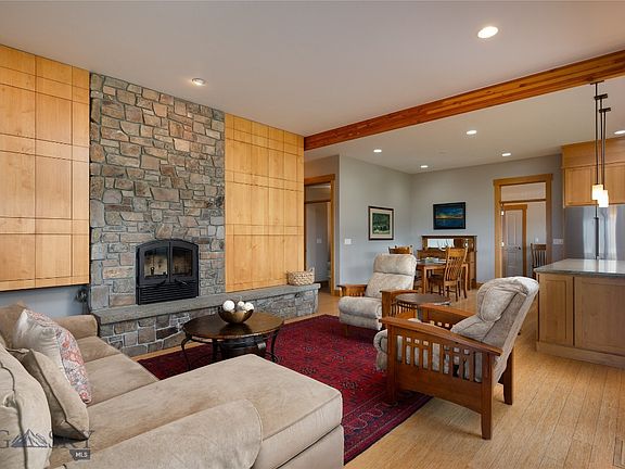 Triple Tree Ranch home! Come experience the breathtaking views from this thoughtfully designed home, perfectly positioned at the end of a quiet cul-de-sac on an elevated lot in the sought-after Triple Tree Ranch. Every detail of this warm and inviting home was crafted to let in the light and stunning mountain vistas from nearly every room. Craftsman design, featuring rich alder trim, bamboo flooring, and Montana stone, both inside and out, the home seamlessly blends into the Montana landscape. The open-concept kitchen, dining area, and great room offer panoramic views of the Gallatin Valley and the majestic Spanish Peaks—perfect for both everyday living and entertaining, both inside and out on the beautiful covered porch. Even the dedicated home office offers a scenic and inspiring backdrop. The spacious main-level primary suite provides a peaceful retreat, while a guest bedroom with en-suite bath offers comfort and privacy on the same floor. Downstairs, the daylight walk-out lower level features a second kitchen and expansive, flexible spaces ready to adapt to your lifestyle. Enjoy outdoor dining and the views on the stone patio. The downstairs also includes two additional bedrooms and a 3/4 bathroom. A beautiful, finished shop has been added to the property, providing space for outdoor toys and a spacious loft for storage. There is also an electric RV hookup. Triple Tree Ranch features wonderful trails throughout the subdivision and is conveniently situated near Hyalite Canyon and Reservoir, offering ample opportunities for outdoor activities.