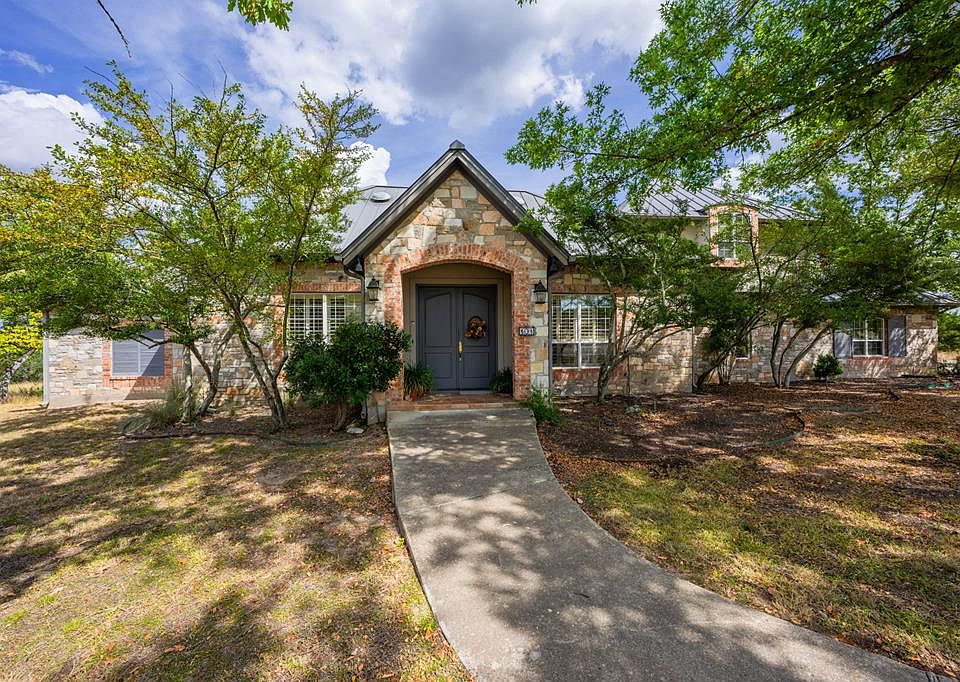 This exceptional custom one-owner home offers 4,098 sq. ft. on 10.33 acres in the gated Kamira Subdivision, ideally positioned on a peaceful corner lot with sweeping Hill Country views and outstanding privacy just minutes from town. The expansive great room features soaring cathedral ceilings, a grand masonry fireplace, large picture windows that capture breathtaking vistas, and a wet bar with a sink for easy entertaining. The open kitchen provides excellent flow with double ovens, a spacious island, wood cabinetry, and abundant counter space, while the adjoining dining area includes custom built-ins and an extended buffet-style display counter. The main floor hosts three bedrooms, including a primary suite with large windows, his and hers separate bathrooms, and two oversized custom closets with built-ins. Upstairs are two additional bedrooms, each with its own ensuite bath—perfect for guests or family. Perched on a hill, this home's patios and interiors showcase stunning panoramic views—an exceptional opportunity to own a property that perfectly blends comfort, craftsmanship, and natural beauty.