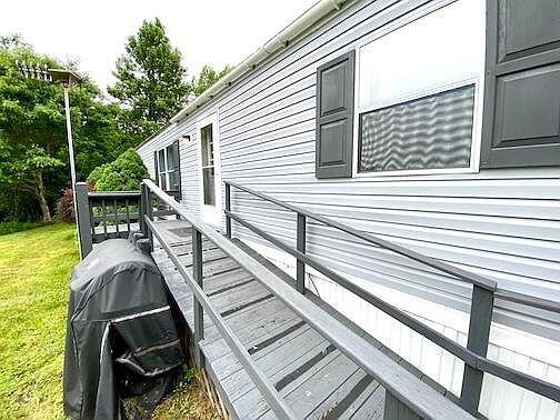 Two bedroom mobile home sits on a concrete slab on a 2.6 acre lot with private well and septic. Ramp to front door, metal pitched roof, open floor plan for kitchen, dining, and living room. Primary bedroom has half bath en suite. All windows have interior storm windows. In addition to the hot air furnace, the heat pump (new in 2020) provides heating and cooling. Three sheds are useful for lawn/gardening tools/snow blower or bulky storage. Two of the sheds have electricity, and one is also insulated. Open lawn and fields close to the home, plus a wooded area. Just a 10 minute drive to Belfast. This clean and tidy compact home could be just what you have been looking for!