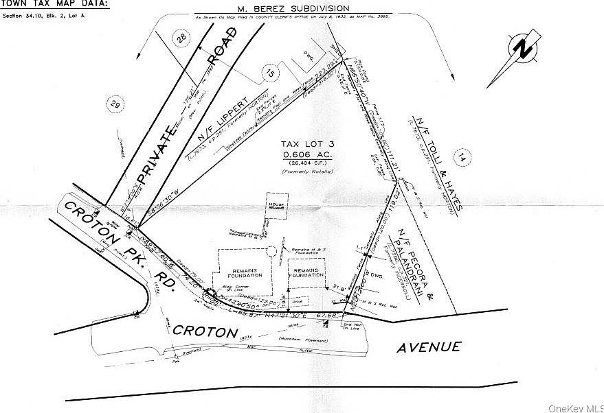 There are 2 contiguous lots included in the sale. 101 Croton Park Rd 0.5885 acres, has remains of a foundation and 44 Croton Ave 0.1195 acres. Suitable for one single family using the combined lots. There is no Board of Health, required to build. Available to potential buyer is a survey and topo map. The taxes are being assessed as if there is a single family.