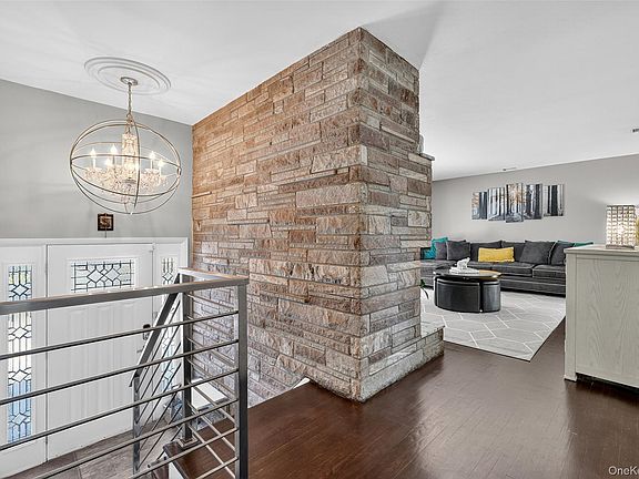 Inside, the updated kitchen shines with quartz countertops, custom cabinetry, and a classic white beveled-edge subway tile backsplash, seamlessly combining function and style. The kitchen opens to a formal dining space and sliders to a covered outdoor dining space, both perfect for entertaining large crowds. A stunning stone fireplace with a modern insert anchors the living space, while fully renovated baths in sleek neutral grays provide a fresh, spa-like feel. Lower level offers multiple zones- mudroom, laundry, full bath, home gym and two recreation rooms perfect for guests, in law use or work from home especially with separate entrance both at the rear and off the expansive paver stone driveway. Outdoors, multiple patio levels—including a covered area, herringbone Trex decking area surrounding above ground pool with views of all of Yonkers—offer a variety of entertaining zones for summer barbecues, quiet relaxation, or gatherings with family and friends, making this home truly exceptional inside and out. PLEASE PROVIDE H&B BY 10/1 AT 7PM