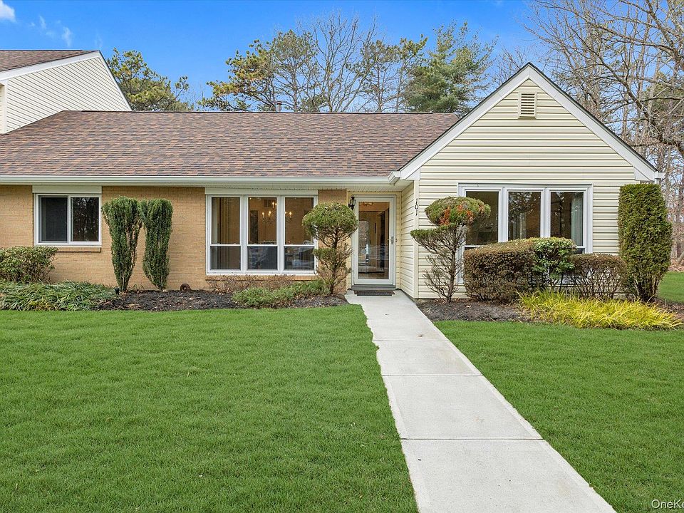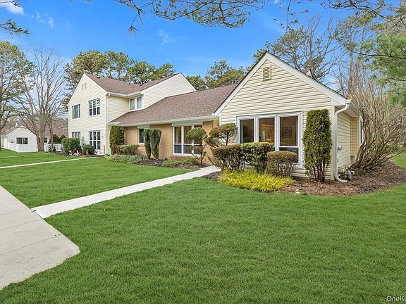 Welcome to 101 Dari Drive, a spacious, end ranch unit nestled in the heart of the Autumn Ridge Planned Unit Development in Holbrook, New York. This single-story home is designed with ease and convenience in mind, featuring two bedrooms and two bathrooms, all on one accessible level. As you step inside, you'll be greeted by a generously sized eat-in kitchen. The home flows seamlessly into a spacious living room and den, both boasting cathedral ceilings that create an airy, open atmosphere. Sliding doors in the den lead you to a private brick patio with a fully fenced yard, offering a serene outdoor space for relaxation or entertainment. The home's primary suite is a true sanctuary, complete with a massive walk-in closet and an ensuite bath featuring a walk-in shower and an oversized vanity with two sinks. The second bedroom, also with a large closet, offers flexibility and could serve as a comfortable guest room or quiet home office. A second full bathroom with a tub ensures ample space for everyone. Storage won't be an issue here, thanks to pull stairs leading to a finished attic. The home is equipped with CAC, natural gas, and an in-unit washer and dryer for your convenience. The Autumn Ridge community extends the living space beyond your front door with its outstanding amenities. Enjoy heated outdoor pools with a patio area, a playground, tennis, basketball, pickle ball, shuffleboard, and a large clubhouse. This is the low maintenance, ranch-style home you've been waiting for. Schedule your private showing today.