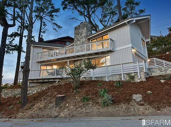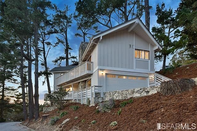 Stunning panoramic Ocean views, tastefully renovated throughout, featuring a new kitchen complete w/off-white cabinetry & quartz slab counters, SS KitchenAid appliances, SS farmhouse sink & center island - all open to the gracious living room- soaring beamed ceilings. Beautiful stone fireplace & attached decks overlooking the ocean. All 4 bathrooms are renovated & complimented by quartz, marble & tile accents. Beautiful master suite w/stunning views & renovated bath. Lower level offers 2 over-sized bedrooms, a second en-suite master, media room & 2 car garage. New roof, new high efficiency central heating & air conditioning system, LED lighting, all new engineered hardwood floors in main living areas.