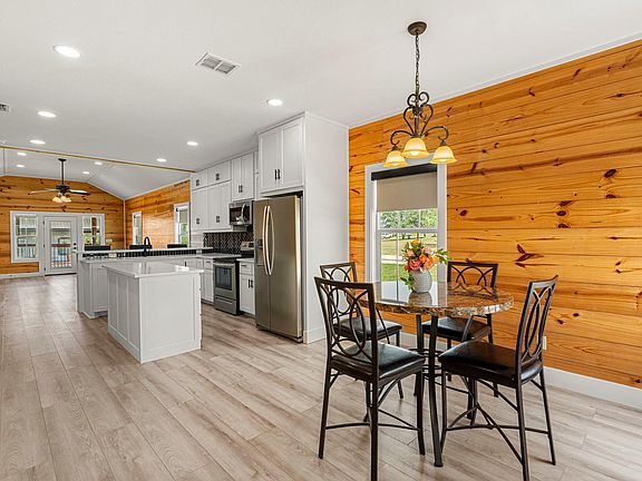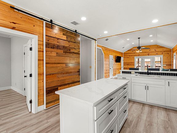 - Ceiling Fan(s), Eat-in Kitchen, Kitchen Island, Natural Woodwork, Open Floorplan, Pantry, Quartz Counters, Recessed Lighting, Vaulted Ceiling(s)