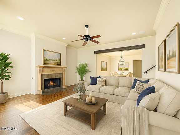 A great find on a corner lot in the charming Heritage Trace subdivision, this two-story former 2005 Parade of Homes showpiece continues to impress with its craftsmanship and thoughtful updates. Inside, real cypress wood floors flow seamlessly through the living and dining areas creating a warm and timeless feel. The open kitchen features classic brick flooring, a pantry closet, and a wine cooler, perfect for entertaining! The spacious living area includes a natural gas fireplace, built-in ceiling speaker system, and easy access to the backyard, where a new fire pit and a lovely fountain create an inviting outdoor retreat. The small yard is easy to maintain, and the sprinkler system was completely restored in 2025 with a new Hunter controller. Both the rear and side fences have been replaced (rear in 2024, side in 2025) for added privacy. The primary suite offers a peaceful escape with a whirlpool garden tub, separate shower, travertine floors, and a walk-in closet. Upstairs, you'll find 3 bedrooms (two oversized); one of the rooms can easily serve as a game room, workout room, or private suite with its own full bathroom. There's also a convenient office nook for working or studying from home. Extra features include a two-car garage with shelving and a storage rack, under-stair storage, freshly painted interiors, and both AC units tested and working well (the upstairs unit replaced in March 2023). Every detail has been designed for comfort, charm, and easy living, making this home a perfect blend of elegance and everyday practicality.