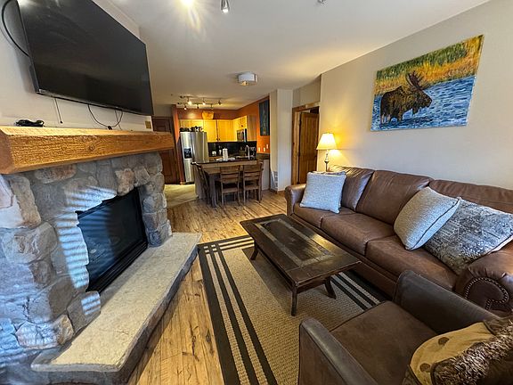 Beautiful 2-bedroom, 2-bath condo located at the Buffalo Lodge in River Run Village with a king and second bedroom with a queen, flat screen TVs. Living area with a fireplace, flat screen TV, private balcony and a new leather queen sofa bed. Fully equipped kitchen with New Appliances, Air Fry & Convection Oven, Dishwasher. Wi-fi and heated underground parking. All Beding provided if needed. Outdoor heated pool and hot tubs with views of the mountains. The building is full of amenities.