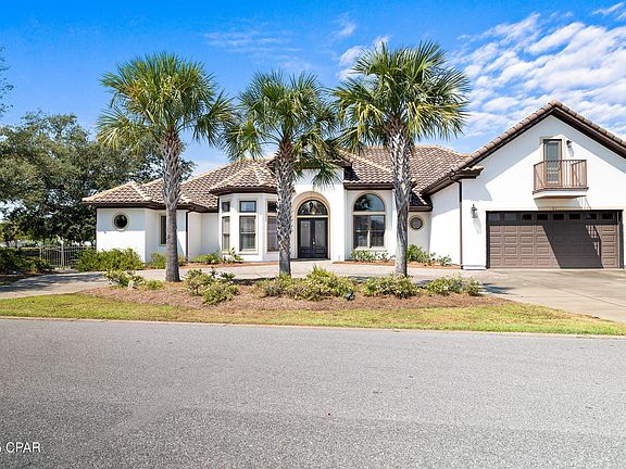 Seller offering $20,000 towards rate buy down or closing cost. Preferred lender will contribute and additional 1%. Welcome to this stunning custom home located on the renowned Jack Nicklaus Golf Course in the gated Bay Point community of Panama City Beach. Offering over 4,400 square feet of thoughtfully designed living space, this property combines upscale comfort with resort-style amenities. Golf pro shop, Neon's restaurant and sushi bar, Hilton Bayside resort is walking distance with multiple restaurants. Step inside to soaring ceilings, a gas fireplace, and an open floor plan perfect for both relaxing and entertaining. The chef's kitchen flows seamlessly into spacious living and dining areas, and a full bar with wine fridge sets the stage for unforgettable gatherings. Upstairs, an additional kitchenette with full size refrigerator and dishwasher, and built in bunk room provide added convenience for guests or multigenerational living. Outside, enjoy your private backyard retreat complete with a heated pool, outdoor kitchen, and views of the lush golf course. After a long day, unwind in the sauna or enjoy a quiet moment in the beautifully landscaped shared green space of Dragon Circle just steps away—complete with a playground. Additional features include a tankless water heater, two car garage plus golf cart side door, spray-foamed attic for energy efficiency, and premium finishes throughout. Bay Point offers 24-hour security, a world-class marina, tennis courts, and a relaxed coastal lifestyle just minutes from the beach. Experience the best of Florida living—schedule your private showing today.
