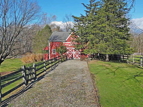 CONVERTED BARNS WITH POOL. Located on one of the prettiest country roads in all of Dutchess County, this charming & historic getaway offers fun, lofty & creative spaces to gather, entertain and relax in the countryside, while conveniently located to Millbrook Village & 90 minutes to Midtown. This 19th century converted barn was beautifully preserved and showcases the exposed beams, wide board floors and soaring vaulted ceilings. A wall of glass in the living room seamlessly bridges the interior to the bluestone terrace outside. The renovated country kitchen is complete with a fireplace. This truly 'hip' home includes a large open living/great room, a music room and three bedrooms each with their own updated ensuite bath. Adding to the charm of this property is another converted barn used as a pool/guest house next to a beautiful bluestone terrace and heated pool.