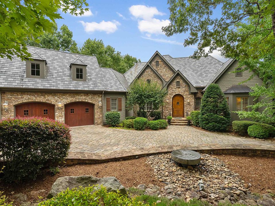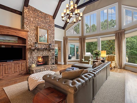 Absolutely stunning and rarely available resale in the highly coveted Cliffs at Mountain Park! The exterior blends timeless stone, a slate roof, and a cobblestone driveway for stately curb appeal. Step inside through the arched entry door into a dramatic great room with vaulted, beamed ceilings, walls of windows showcasing a park-like setting with seasonal mountain views with a floor-to-ceiling stone fireplace and custom-built shelving. The gourmet kitchen features Sub-Zero, Wolf, and Bosch appliances, quartz counters, a butcher block island with gas cooktop, and a walk-in pantry. The dining room, warmed by the see-through fireplace, is ideal for both cozy dinners and larger gatherings with friends & family. Just off the kitchen, a sunroom with another fireplace creates a year-round retreat. The main-level primary suite offers hardwood floors, trey ceilings with beams, oversized windows, private deck access, and a spa-like bathroom with extended vanities, jetted tub, large walk-in shower, and generous closets. The lower level is designed for entertaining, with a family room, kitchenette with wet bar, beverage cooler, and ice maker, plus two guest suites with ensuite bathrooms and walk-in closets. A flexible bonus room can serve as an office, media room, or fourth bedroom. Two expansive decks span both levels, perfect for seamless indoor-outdoor living. Above the garage, a climate-controlled bonus space works well as a studio, office, or hobby room. Luxury upgrades include plantation shutters, central vacuum, whole-house generator, EV charger, and even space for a future elevator. Nestled beside a scenic hiking trail, yet just minutes from the front gate, this home offers privacy, luxury, and convenience to all of the amenities Mountain Park has to offer. Available for additional purchase, a Cliffs Club membership grants access to all seven Cliffs communities including Mountain Park’s new sports center that features padel, pickleball, tennis, & pool, wellness center, dog park, and member clubhouse. Conveniently located close to many State Parks, and thriving night-life, restaurants, arts and culture of Greenville SC, and the charm of Hendersonville/Asheville NC all year long. Every detail of this home has been meticulously designed and maintained, creating an unparalleled blend of luxury, warmth, and comfort.