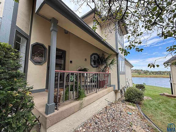 Gorgeous townhouse on the Missouri River! Experience easy, carefree living as you soak in beautiful river views--whether from the deck just off the living room or the patio extending from the walk-out family room. You will feel like you're on vacation everyday with tons of space to entertain in this 4-bedroom, 5-bath townhome. Living room has 2 story set of windows with a fireplace. The eat-in-kitchen has Corian countertops; garage is right off the kitchen for easy unloading of groceries. Master suite offers a stand-alone shower, jacuzzi tub, double vanity, 2 closets areas, and sliders to the deck overlooking the river. Upstairs has a sitting/tv area which overlooks the living room continuing the views of outside. Two more bedrooms and a full bath round out the upstairs. Downstairs has a family room with gas/log fireplace, sliders to the patio, bedroom with its own full bathroom, bonus room, utility room with tons of space for storage and a 1/2 bath. HOA takes care of the snow removal, yard and window washing. There is also water/boat access. These townhouses on the river don't come on the market often.