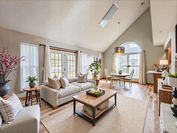 Lovingly cared for by the same family for decades, this charming 3-bedroom, 2-bath home blends small-town living with convenience and space. The inviting main level features an open floor plan with a vaulted living and dining area filled with natural light from skylights above. The kitchen offers a peninsula island with breakfast bar seating and flows seamlessly into the dining area, perfect for everyday living and entertaining. A main-floor bedroom and full bath add flexibility.