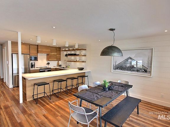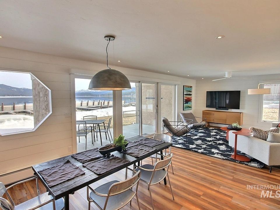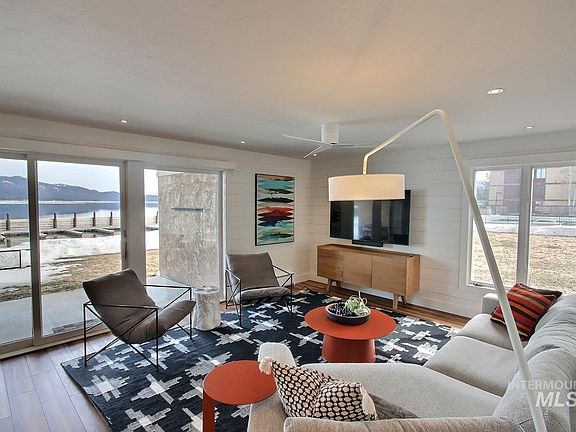 Lakefront Luxury Condo at Crystal Beach. Impeccably remodeled, lake level corner condominium that embodies modern beach vibes. Bright and airy, the gathering spaces open to a generous covered outdoor patio. Primary bedroom with en suite bath, 2 guest rooms, one with custom built-in queen bunks. 3 bedrooms and 2 baths easily accommodate 8. Crystal Beach offers premier amenities including: pool, pool deck, lawns, built-in BBQ's, beaches and docks. Have we mentioned the panoramic mountain and lake views? Summer and Winter sunsets overlooking Payette Lake and Brundage Mountain will not disappoint. Contemporary slab panel built-ins and cabinetry are found throughout the condo. The kitchen features open shelving, stainless appliances, tile accents, quartz counter tops and a peninsula that will encourage guests to gather. Interior finishes and design by Kirsten Marie Design LLC. Located within a few blocks of downtown McCall amenities & shopping. Option to use as a vacation rental or keep for your private retreat.
