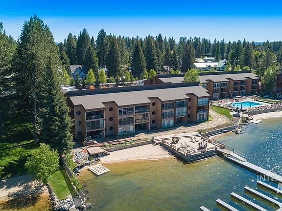 Lakefront McCall condo has all the amenities you will need for your place in McCall. This clean and comfortable updated ground level 2 bedroom 2 bath condo features stunning views of Payette Lake and the surrounding mountains. With its close location to downtown McCall you will be in the heart of all the downtown action and activities. The open living area and kitchen feature plank flooring in the living, dining and kitchen areas and granite counters in the kitchen. The living area opens to your private patio overlooking Payette Lake. The main bedroom has plenty of space with private bath, tiled shower and single vanity with plenty of drawer space. The second bedroom offers plenty of comfortable sleeping options. The second bathroom, just off the living area, also has a tiled shower and single vanity, plus full sized stackable washer/dryer in the hallway closet. Crystal Beach condos offers superb community amenities including pool and a large community beach with fire pit and BBQ. Most furniture included.