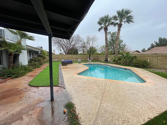 Spacious home in north Phoenix! Large three bedrooms and two bathrooms. Updated kitchen with all stainless steel appliances and granite countertops. Kitchen eat-in area with bay window. Tile floor throughout the living room and hallways. Spacious inside laundry room. Enclosed Arizona room with sliding glass doors. Covered patio. Huge backyard with a fenced swimming pool and lush green grass. Two car garage. Amazing neighborhood. Walking distance to shopping centers. Close to schools, shopping and many dining options.