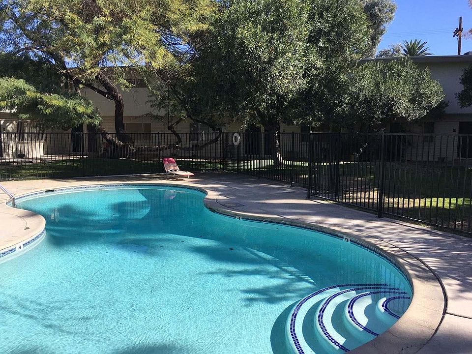 Easy walk to University of Arizona and 4th Ave. Two bedrooms with a large walk in and linen closet. Front patio fits two chairs and a small coffe table. Outdoor pool, off street parking and in complex laundry. Gas included. No smoking. Cats only