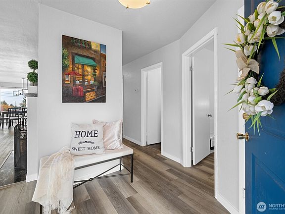 Charming Port Angeles home with ocean and mountain views! This lovely 2-bedroom, 2-bath home offers comfort and versatility on a desirable corner lot. The main level features a bright living room with a cozy fireplace, dining area, eat-in kitchen. 2 bedrooms and 1 bath. Enjoy new flooring throughout and a new heat pump on both levels for year-round comfort. The lower level adds bonus living space with a family room, laundry area, and additional bath. Relax on the covered front porch while taking in the views. Plenty of storage in the garage. Conveniently located near shopping, schools, and downtown — this home blends comfort, function, and an ideal Port Angeles location.