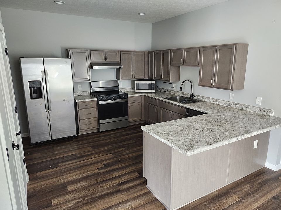 Inside, you'll find modern finishes throughout, including luxury vinyl plank flooring in the main living areas and soft carpet in all bedrooms. The kitchen comes fully equipped with an electric stove, refrigerator, dishwasher, microwave, and ice maker everything you need for easy, comfortable living.