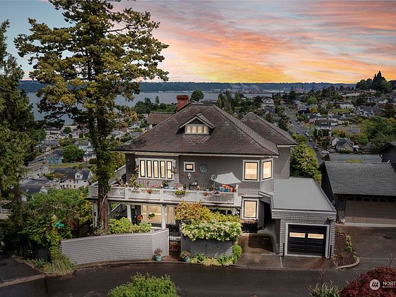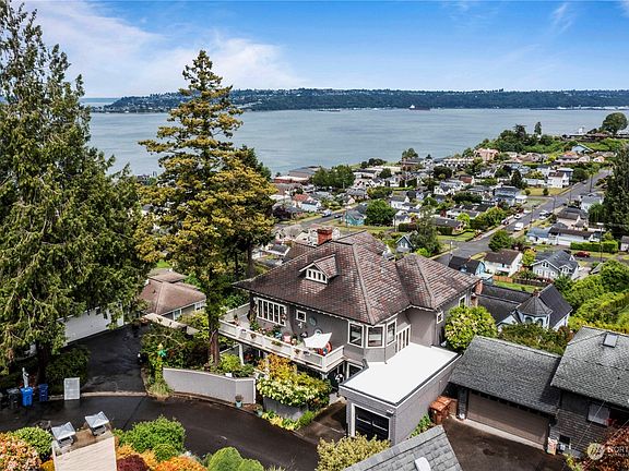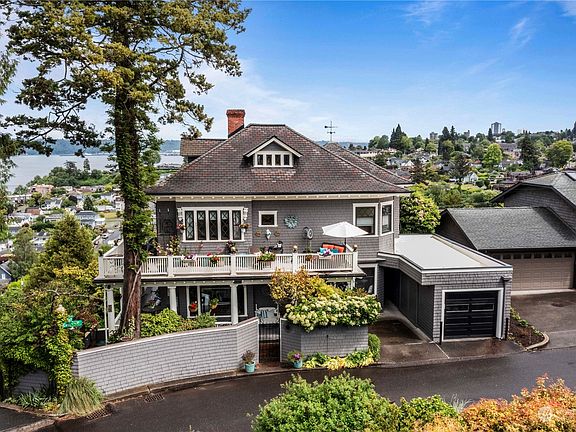 IMPROVED PRICE - READY TO SELL! The extraordinary 180-degree view includes Commencement Bay, the Cascades, the Sound & Mt Rainier~Imagine the sunsets you'll enjoy from the decks~The Baker Mansion was taken down to the studs, restored piece-by-piece w/updated plumbing, electrical, adding A/C & modernizing the kitchen while keeping the sense of the era~This home boasts 1905 with built-ins, leaded glass & vintage light fixtures~The 3rd level Eagle's Nest bedroom has a full bath~Don't miss the pull-chain toilets & built-in vacuum~All bedrooms have walk-in closets~Lower level 2-bdrm MIL rents for $2200/mo & has a full bath, kitchen, great room & view from the lower level deck~Asphalt roof will last a lifetime~Pre-inspected & ready.
