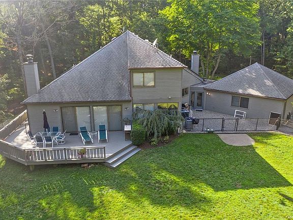 Modern living in Pound Ridge NY. Just 45 mins from NYC, set on 3+ acres of gated, fenced landscaped property with a long impressive approach to peaceful privacy. 4200+sf (+-700 SF on lowest level included) spacious 3BR 2.5 full bath with a 4BR septic! Room to expand! Updated kitchen, open floor plan, 1st Flr Master Suite, heated 2 car garage has ceiling height for a lift. Dedicated office on main level to work from home. 2 Bedrooms upstairs + full bath offers a logical layout. Lots of glass and high ceilings; all the elements of a contemporary living space. Well maintained and loved by owners. Enjoy starry nights on the deck, summers gardening. Plenty of room for a pool! Pound Ridge offers over 5000 acres of open space for all to enjoy...lose yourself in the woods this summer. Meet friends and neighbors at the Harvest Festival, Pound Ridge Pride day; the best fireworks display outside of the city. A 40 acre town park with 3 pools snack shack! Come see all Pound Ridge offers!