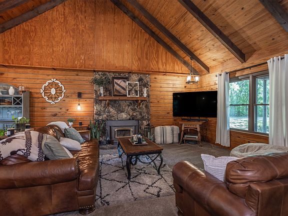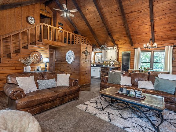 Nestled on the outskirts of town, this custom-built log cabin offers rustic charm with modern comforts. The home features soaring ceilings, a cozy wood-burning fireplace, and a chef’s kitchen complete with a built-in coffee bar, granite countertops, and ample storage throughout. Three spacious bedrooms are located on the main level, with an additional bedroom upstairs that overlooks the great room below. Enjoy peaceful mornings on the covered front porch and take advantage of the detached garage, which includes a workshop area. The outdoor living space is designed for relaxation and entertaining, with a hot tub and dedicated entertaining area perfect for gatherings. This home is everything you have been looking for and more! New custom fence with soft lighting feature just completed!!!