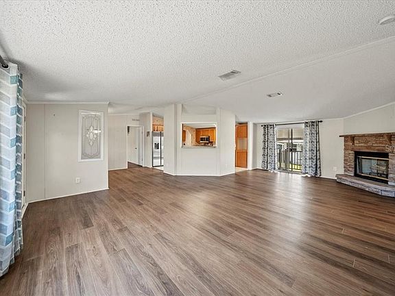 Welcome to Twin Fountains, a 55+ community where you OWN the land! Built in 2005, this beautifully maintained 3-bedroom, 2-bath manufactured home offers just over 1,700 sq. ft. of living space and sits on a desirable corner lot with no rear neighbors. Upon arrival, you'll be greeted by an oversized driveway providing plenty of parking space. Inside, you’ll find an open floor plan featuring a large living room with hurricane windows and a beautiful fireplace, along with a separate dining room also showcasing a hurricane window. The spacious kitchen offers an abundance of cabinet and countertop space, a pantry, and a convenient pass-through window overlooking the dining and living areas. The split layout provides privacy, with an oversized master bedroom featuring an ensuite bathroom that includes a walk-in shower, double vanity, and a new Safe Step walk-in tub for safety and comfort. On the opposite end, you’ll find two spacious guest bedrooms and a guest bathroom. The kitchen features tile flooring, the main living areas have plank flooring, and the bathrooms are finished with linoleum. This meticulously cared-for home also includes an inside laundry room with access to the enclosed Florida room featuring glass windows, as well as an attached golf cart garage. Additional highlights include a whole-house water softener and filtration system. Twin Fountains offers a low HOA of just $180 per month, which covers water, sewer, lawn maintenance, internet, cable, and access to a wide range of amenities—including a heated pool, clubhouse, and shuffleboard. RV/boat storage is also available (check with HOA for availability). Conveniently located off N Scenic Hwy near Dundee, Haines City, and Winter Haven, this home provides easy access to I-4, Tampa, Orlando, and all of Central Florida’s attractions.