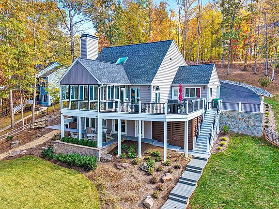 This spectacular lakefront contemporary home is perfect for entertaining. Short term rentals allowed! This immaculate lake home has been almost totally been remodeled & is designed for comfort, style, & lake living. 4 bedrooms, 3 1/2 baths, approx 3,660 sq. ft finished, & approx 660 sq. ft unfinished. Great room features a cathedral ceiling, stone fireplace, & beautiful hardwood floors. The kitchen offers a large island w/ breakfast area, granite countertops, GE Profile appliances, pantry & open to the dining area. Main level primary suite has a cathedral ceiling, spacious bath w/double vanities & an oversized double shower. Sunroom w/floor to ceiling glass. Two guest bedrooms & a full bath on the upper level. The lower level has a family room, 4th bedroom & full bath. Partially Furnished The house is sold with most furnishings. Seller has a list of items that do not convey. House is decorated as 4 bedrooms but has a 3 bedroom septic. Whole house generator will convey with the house.