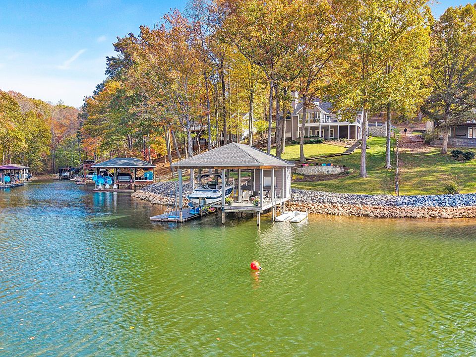 If you are planning on doing short term rentals then it is based on the 3 bedroom septic permit. Newer roof, large deck (only 2 years old) with composite decking with built-in LED lighting that is all controlled by the App on your phone. The lower level includes a large family room, additional bedroom and full bath, plus two generous storage areasand The two unfinished areas on the lower level, one can be used for a workshop or for lawn tools & mower which has a separate entrance from the lower level. The other one can be used as extra storage which is located inside the lower level. The kitchen was updated approx 3 years ago. Laundry is on the main level. Gently sloped lot with approximately 145 feet of waterfront, this property also features a stone firepit area and a fenced yard perfect for pets. The private dock includes a single slip, floater, and jet ski platformeverything you need for lakefront living! Dock is sold as-is but seller is getting the AEP inspection. The yard is fenced and seller is selling the dock as-is because the fence is below the 800' contour. Call listing agent for details. Walkway to dock has composite decking. Gas heat and central air on main and lower levels, plus 2 ductless heat pumps for extra heating and cooling on the lower level, heat pump on upper level. Primary bath has a skylight. Paved driveway and extra paved parking area for extra guest at the left side of the entrance of the driveway. This community has an abundance of amenities for a low yearly fee which include: Private boat ramp, clubhouse, tennis/pickelball courts, boat storage area, playground and pavilion with day docks. Clubhouse includes racquetball, gym, library and event room with full kitchen for private parties.