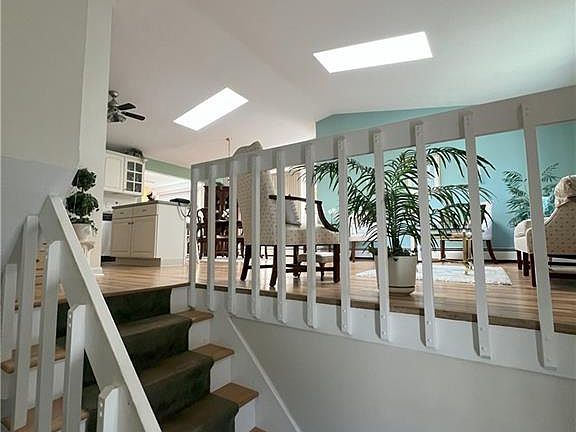 Come see this meticulous 2 Bedroom Raised Ranch set on an impeccably manicured corner lot. Cathedral ceilings, sky-lit kitchen with center island and open floor plan. Sunroom addition with fireplace makes a cozy spot for reading, watching tv and walk out to deck and yard. Partially finished lower level family room/ office space and half bath are ideal for additional living space.