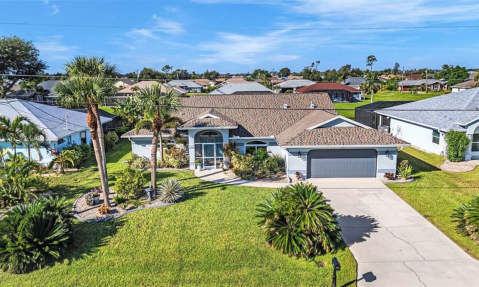 Welcome to this beautifully updated and fully turnkey 3-bedroom, 2.5-bath home located in the desirable Pinehurst section of Rotonda West. Set on a quiet canal with 80 feet of water frontage, this move-in-ready property offers over 2,400 sq ft of comfortable living space and an unbeatable Florida lifestyle. Step inside to discover two spacious living areas, updated plank tile flooring, and a stunning modern kitchen featuring quartz countertops, white shaker cabinetry, and black stainless steel appliances. The owner's suite includes dual walk-in closets, a spa-like bathroom with a floating double vanity, walk-in shower, and standalone tub. Enjoy the expansive enclosed Florida room with a wet bar and wine rack—perfect for entertaining. Outside, relax in your large heated pool surrounded by a 30-foot panoramic screened enclosure, or unwind on the private two-tier deck overlooking the canal. This home has been meticulously upgraded with PGT hurricane impact windows, a new roof with 50-year shingles, an impact-rated garage door, enhanced LED lighting, and upgraded fixtures throughout. It sits on a beautifully landscaped lot with concrete curbing, irrigation, and mature plantings. Low HOA fees ($190/year) and no flood insurance required (Zone X/X500). Whether you're looking for a seasonal getaway or a full-time Florida residence, this turnkey canal-front pool home checks every box. This home is centrally located to several Gulf of America stunning beaches as well as many golf courses including the 5 Rotonda West challenging courses.