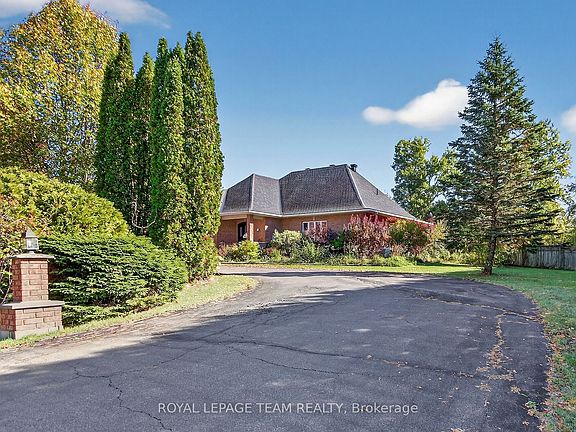 Welcome to 101 Falcon Brook Road, a truly special property that combines peaceful country living with modern comfort, just minutes from Carp Village and Kanata. Set on a fully fenced, private two-acre lot, this all-brick bungalow is surrounded by mature trees that burst with colour each fall, creating a picture-perfect setting of natural beauty and tranquility. Offering over 2,000 square feet of thoughtfully designed living space, the home features rich hardwood floors, abundant natural light, and a welcoming layout that makes everyday living effortless. The bright main level includes three comfortable bedrooms and two full bathrooms. The expansive primary suite serves as a true retreat, featuring a walk-in closet and a spa-inspired ensuite with a relaxing soaker tub. The step-down living room is flooded with natural light with an abundance of windows, creating a warm and airy space perfect for relaxing or entertaining. Adjacent, the dining room offers an elegant setting for family meals, while the kitchen and family room overlook peaceful yard views and include a cozy wood-burning fireplace-ideal for curling up on cool evenings or enjoying movie nights by the fire. Downstairs, the finished lower level expands your living options with a comfortable recreation area, additional bedroom, full bath, and ample storage-ideal for movie nights, a teen retreat, or in-law suite/rental potential. Step outside to enjoy evenings by the firepit under the stars, surrounded by the serenity of nature. Recent updates bring added value and peace of mind, including a Generac 18 kW generator (2023), furnace and A/C (2014), roof (2009), flat roof (2016), basement flooring (2017), and hot water tank (2021) Freshly Painted (2025) A rare opportunity to experience privacy, space, and modern comfort, all in a beautiful rural setting close to every convenience. Some photos virtually staged.