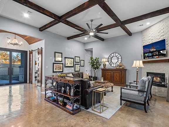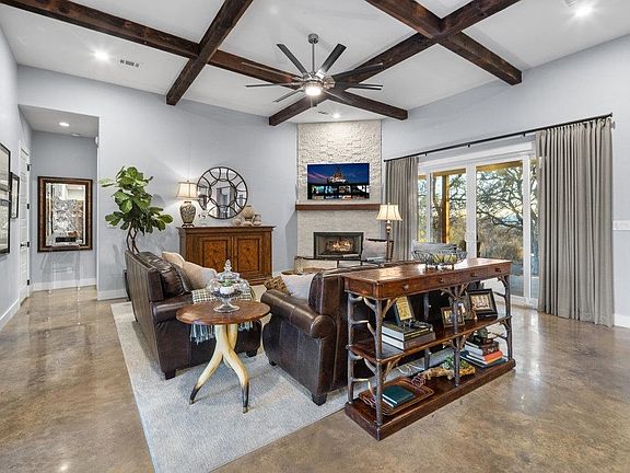 Beautiful custom contemporary home in exceptional condition on a fully landscaped 1 acre lot. High quality finishes throughout the home from the custom iron front doors to the large quartz waterfall island, to the custom tile work in the bathrooms, this home has so many details you must see. Designed for entertaining with a gorgeous covered rear porch with a fireplace and dining area for cool evenings. The back yard is landscaped and includes a large entertaining area of tables and chairs with overhead lighting reminiscent of a fine winery. There is a 767sf guest house built to match the main house with top quality finishes, KitchenAid appliances, quartz waterfall island, pantry, w/d, 1 bedroom and private porch for your family and guests to enjoy in perfect comfort. Located in a neighborhood of similar quality with several custom homes under construction. Minutes to downtown Marble Falls, HEB and other convenient shopping.