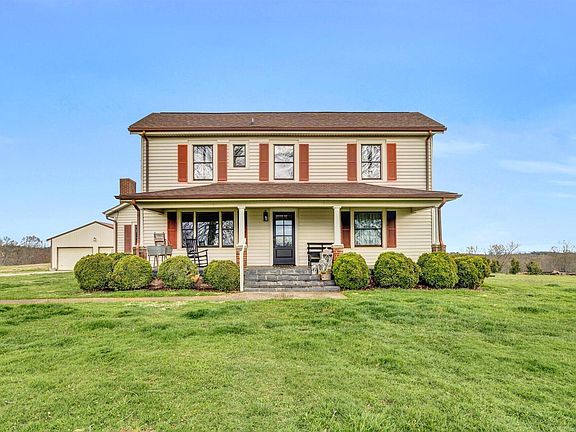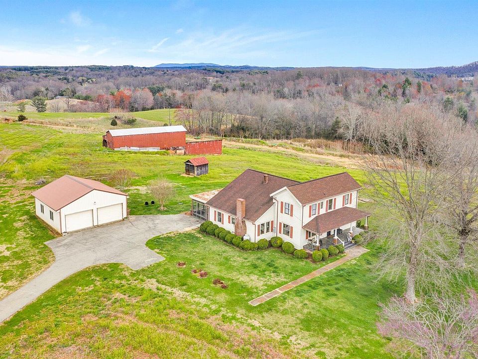 Fall in love with the charm and character of this 1920's updated farmhouse that is conveniently located. It has panoramic views of the expansive fields and sky being the hallmark of this 59-acre property, which includes a paved driveway, huge 4 car garage and a barn. Walk into this bright, spacious home with its ''farmhouse feel'' that boasts a large mud/utility room, open kitchen with breakfast area, adjoining bonus room with its own entrance, perfect for a home office. New vinyl plank flooring on 1st floor and new carpet upstairs. Cozy up to the gas log fireplace or watch an evening sunset on the rocking chair front porch. Recently the tillable land has been used for plantings of soybeans, sunflowers and pumpkins. Enjoy farming or lease to local farmer and watch the crops grow!