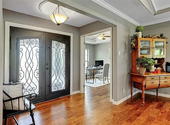 Custom home totally remodeled on 2.59 acs. in Golden Acres subdivision. Open floor plan with study, formal dining room with fireplace, 4 bedrooms, & 3 baths. Large living area with stone fireplace, scraped wood flooring, vaulted ceiling & large windows that overlook the beautiful backyard. Amazing kitchen with island, stainless appliances, granite & breakfast area that opens to covered porch perfect for entertaining. Large master en suite with luxurious shower, multiple shower heads, garden tub, granite & walk in closet. 961 SF mother-in-law suite or game room with full kitchen & bathroom. 2228 SF Garage that can accommodate 10 vehicles, full bathroom and a safe room. Beautiful grounds with mature trees.