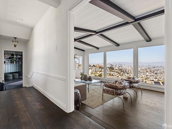 On the market for the first time in over six decades, This extraordinary stunning home offers scale,elegance,and sweeping views from nearly every room.The main level centers around a dramatic sunken living room with soaring beamed ceilings,fireplace, and panoramic windows framing the city skyline. A formal dining room with sweeping views,media room featuring wet bar and a brick fireplace,and a light-filled solarium with a third fireplace provide unrivaled spaces for entertaining. An updated eat-in kitchen,chic powder room,and laundry area complete this level. Upstairs,offers three large bedrooms, each designed to showcase the spectacular vistas and two full baths.The serene primary suite boasts an elevated sleeping area with adjoining sitting room or office and private bath.Adding rare flexibility, the property includes two charming one-bedroom apartments, 111 Graystone and 45 Pemberton,each with private entrances, ideal for rental income, guests, or home offices. A spacious garage and coveted location along the historic Pemberton Steps provide both practicality and charm, with direct access to Cole Valley, the Castro, hiking to Twin Peaks summit and transportation make this an exceptionally rare opportunity.Newer roof and all updated electrical in 2025.