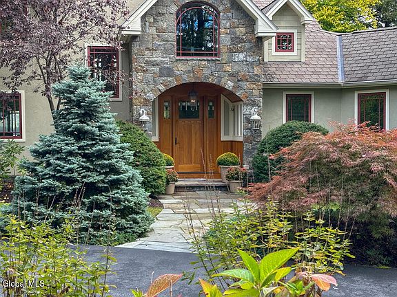 Lake George Lakefront 5,000+sf mansion on Green Harbour featuring incredible lake views from almost every room. Has 5+ Bedrooms, 4 full bathrooms and 4 half, and SIX Fireplaces. Great room has gorgeous lake views and is an open living area, with large stone fireplace, dining area with wet bar, kitchen has a large island and custom cabinetry, additional living room with fireplace. The first floor also has; a primary bedroom suite with a fireplace and a lake-facing deck to walk-out onto, the master bath has a jetted tub; a beautiful office, half bath, and laundry area. Lower level Family Room with fireplace, wet bar, game area, half bathroom, walk-out screen porch with fireplace, another bedroom suite and utility room. Second floor has 3 bedrooms and a full bathroom and another bedroom with fireplace and bathroom over the attached 3 car garage. Zoned heating (2 hot air furnace, 1 boiler) 1000gal propane tank (owned) & 750gal tank for generator. The HOA fee covers the use of the Green Harbour sewer system. Over 300ft of lake frontage on Lake George with a 3 Bay boathouse to dock up to 35ft boats, with sundeck, lifts. Landscaped. Generator. 2 of the fireplaces are wood burning, the rest are gas.