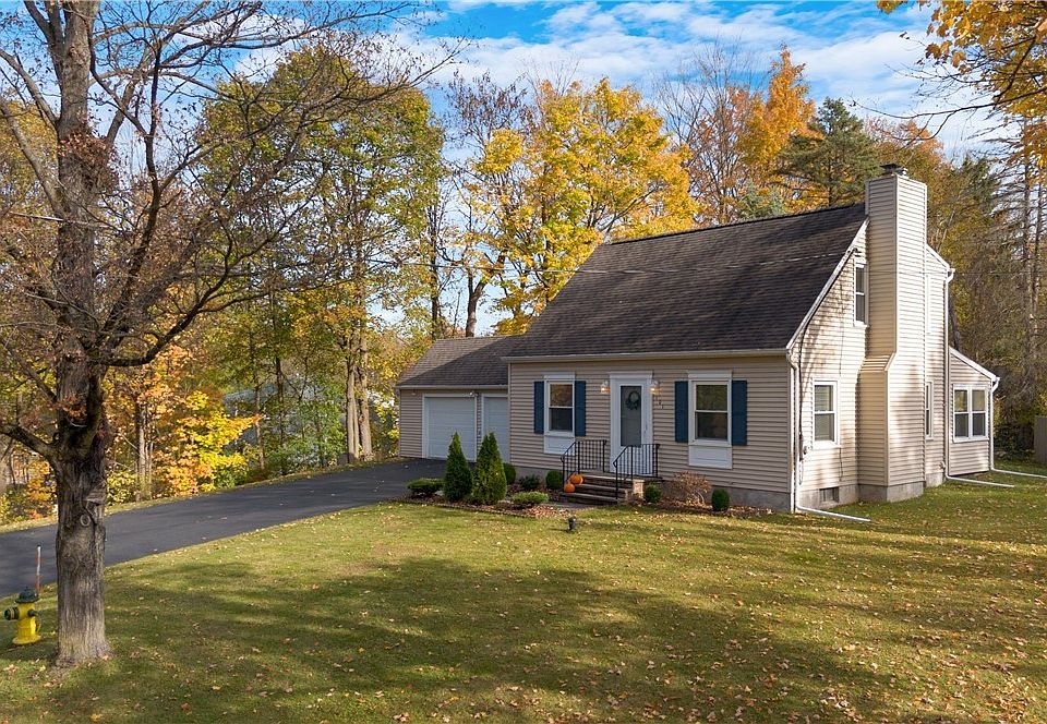 Welcome to 101 Griffin Drive! The curb appeal at this stunning cape cod is absolutely delightful! Immaculate landscaping, siding, newer windows and a fabulous oversized 2.5 car garage are a pleasure to see when approaching the home, which is perched on a large, partially fenced lot offering privacy and a wooded backyard. LOCATION! Walk to all the amenities offered in and around the charming village of Fayetteville. Restaurants, Town Center, the YMCA, grocery stores, coffee shops and parks. Griffin Drive is also nestled in a delightful neighborhood with sidewalks, great for bike riding and walking. Enjoy all the pleasures of village living! CONDITION! This home has been maintained with painstaking care and is truly immaculate. You'll need to do nothing but unpack and enjoy! LIGHT! Ideally positioned on its lot, this home is filled with natural light that pours into every room. FEATURES! Inside, you’ll find hardwood floors, a generous front-to-back living room, and a flexible floor plan with a formal dining room that can also serve as a first-floor third bedroom. A bright three-season porch invites you to read, dine, work, or simply relax. Upstairs, two spacious bedrooms feature cozy nooks and alcoves. Both the powder room and the full bath have been updated with charming bead board, new vanities and lighting. Even the basement is spotless, dry, and ready for storage, a home gym, or easy finishing. EXTRAS! The 2 car attached garage is oversized and offers abundant storage, both in the main structure and via pull-down steps to a roomy storage space. Make your appointment before this one is scooped up!